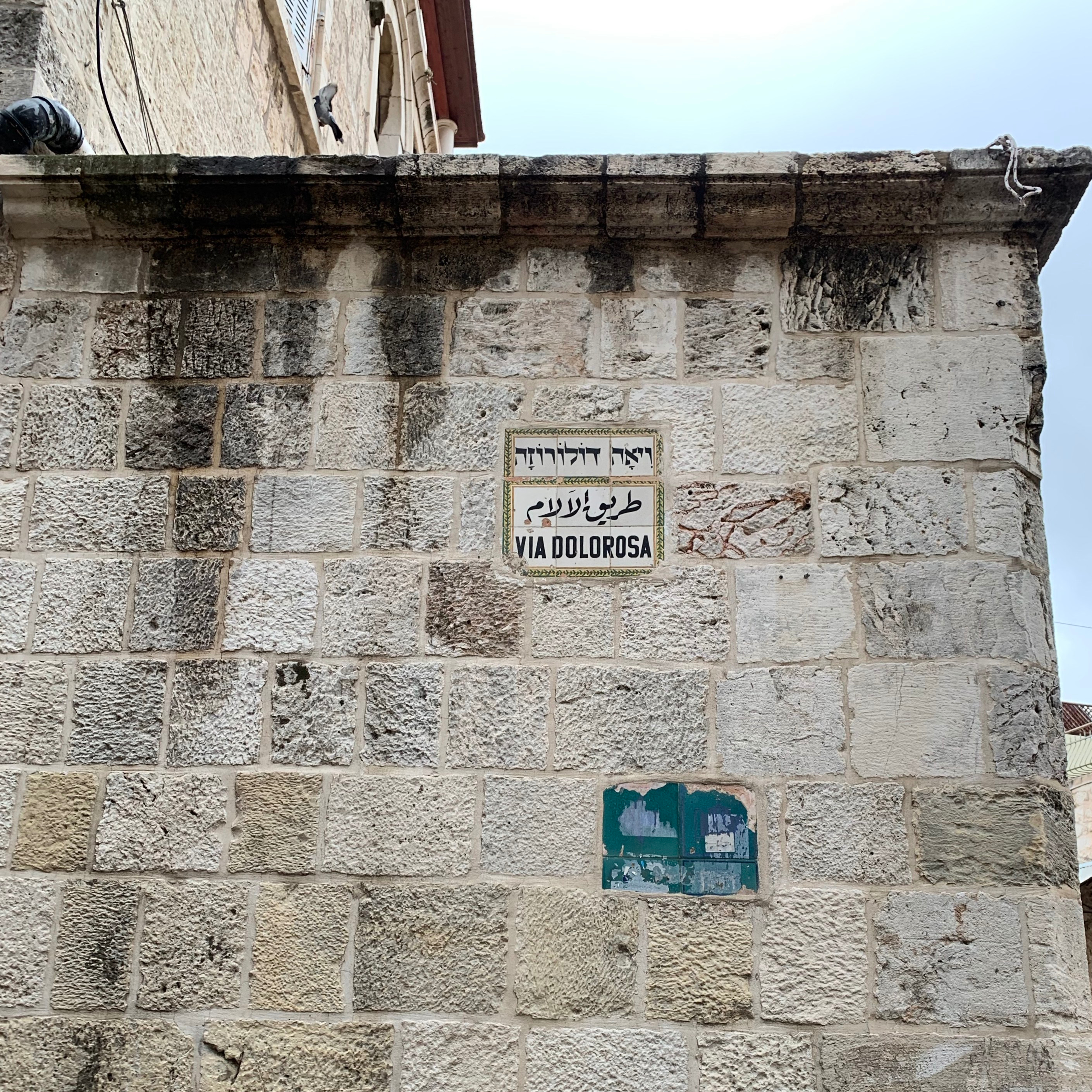 Via Dolorosa sign on block wall