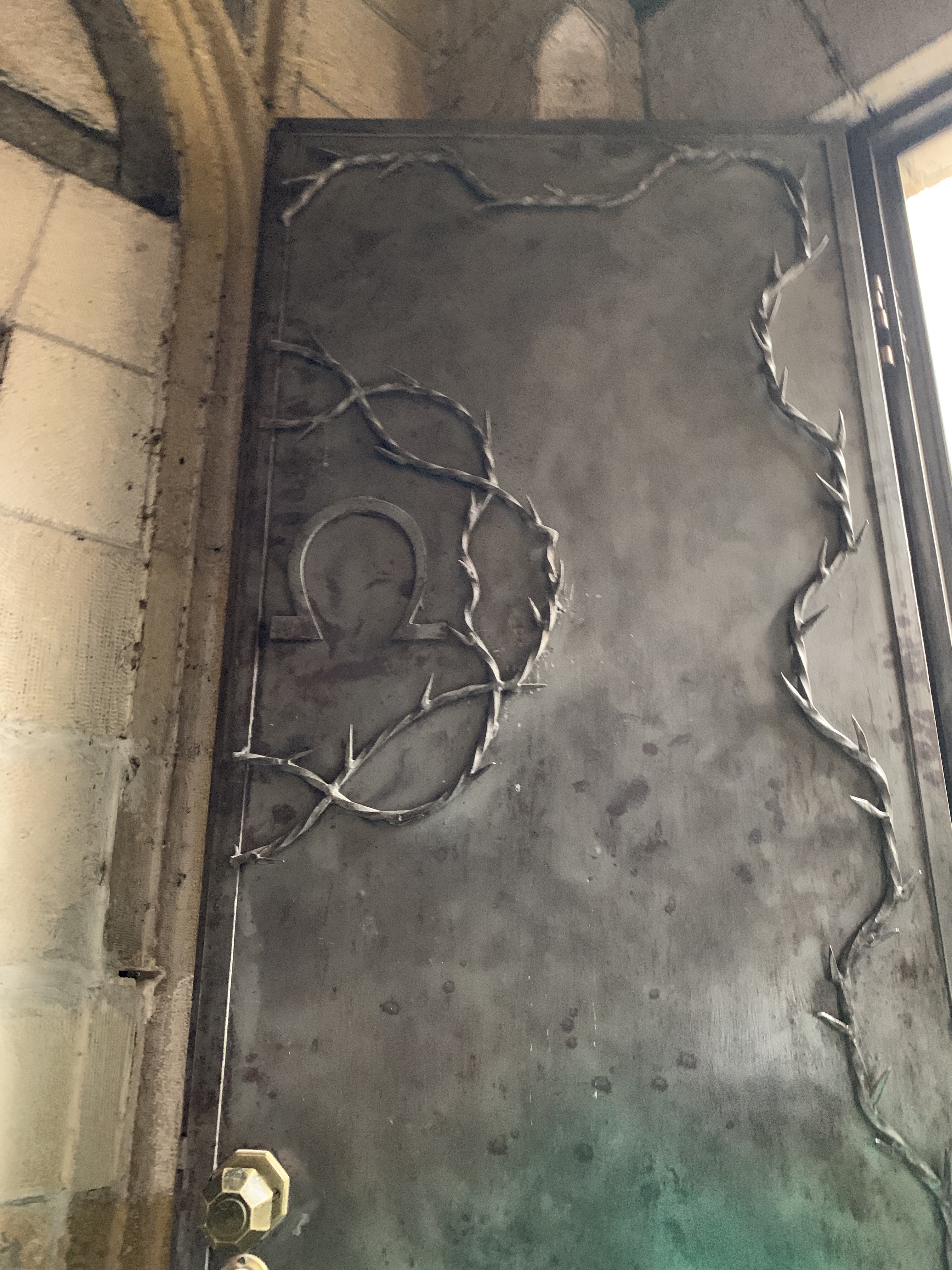 Doorway on Via Dolorosa – one side of Alpha and Omega doorway outlined with a thorny vine.
