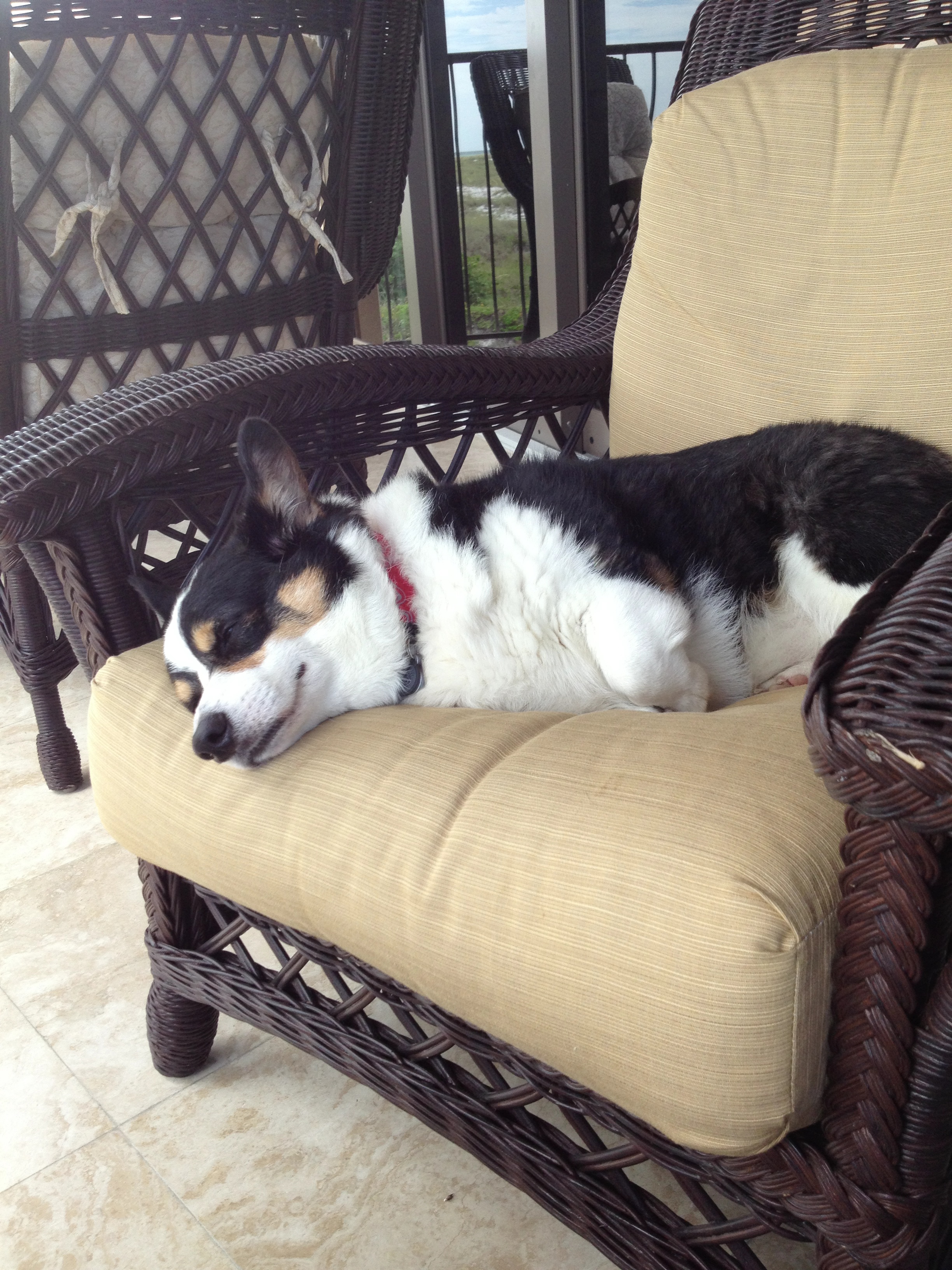 This was one of Higgins’s favorite napping spots at the beach. He loved to be out on the balcony.
