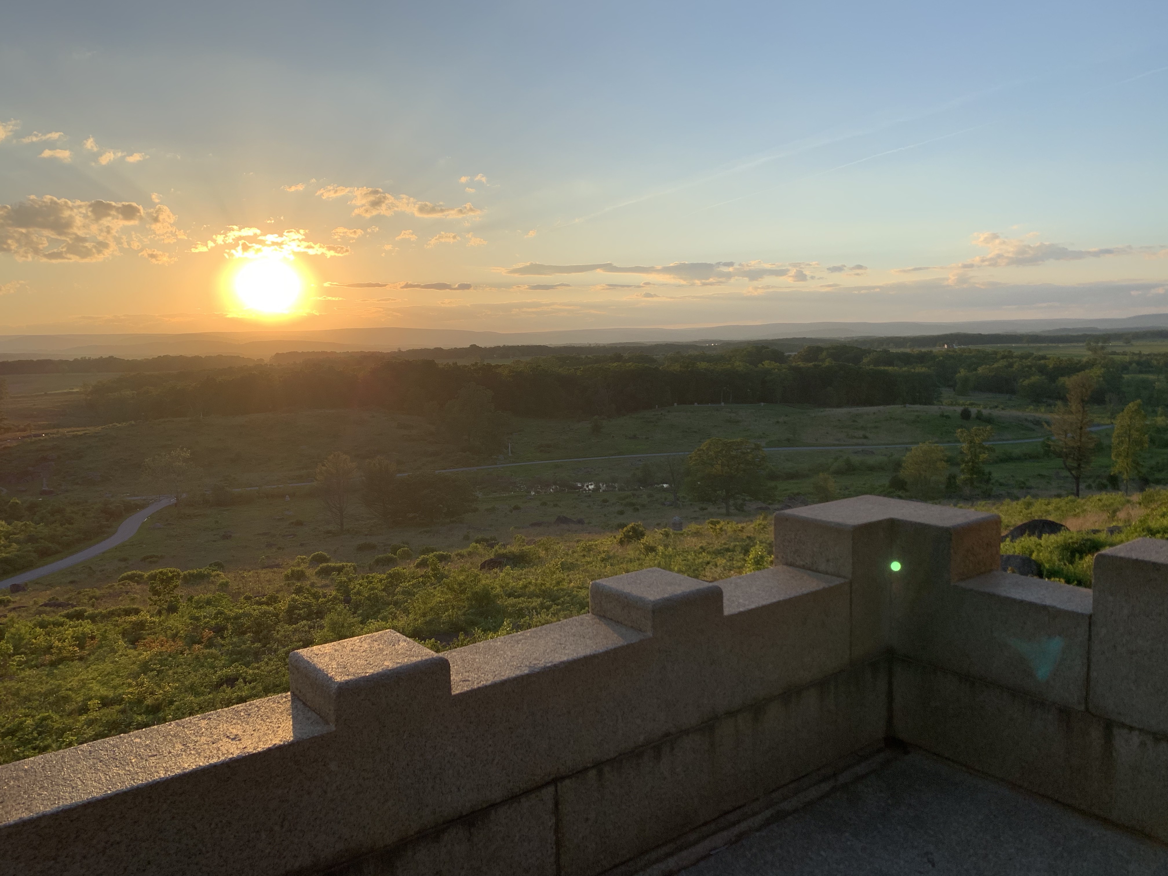 Sunset View of the Gettysburg battlefield from the Union stronghold on Little Round Top