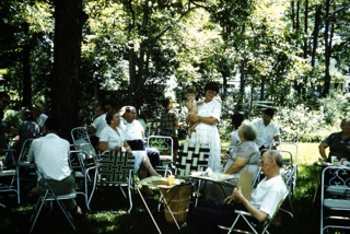 My grandmother holding me while visiting with relatives.