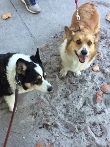 One time, on a walk, we met another corgi.