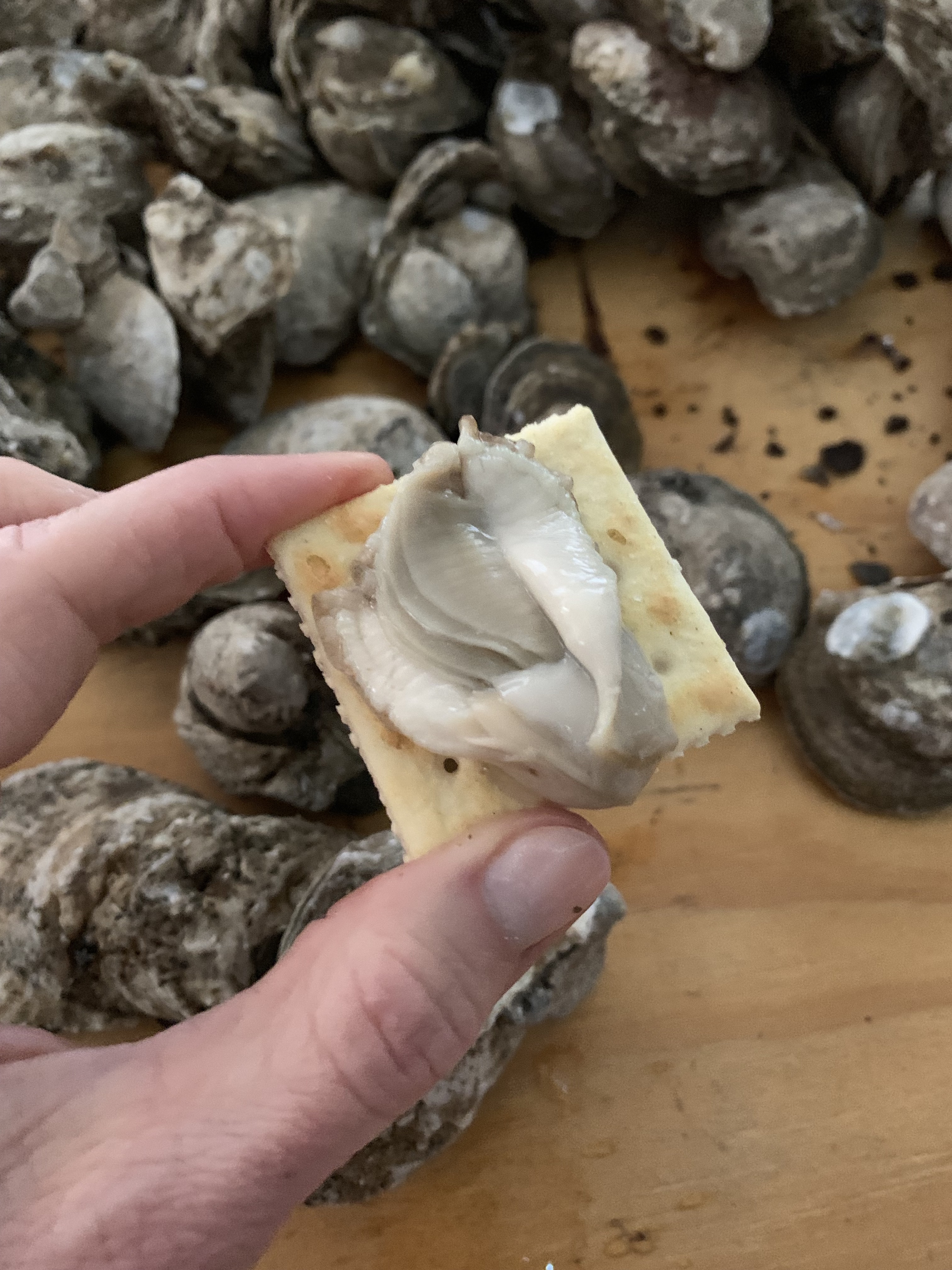 Roasted Oyster on a cracker – so good