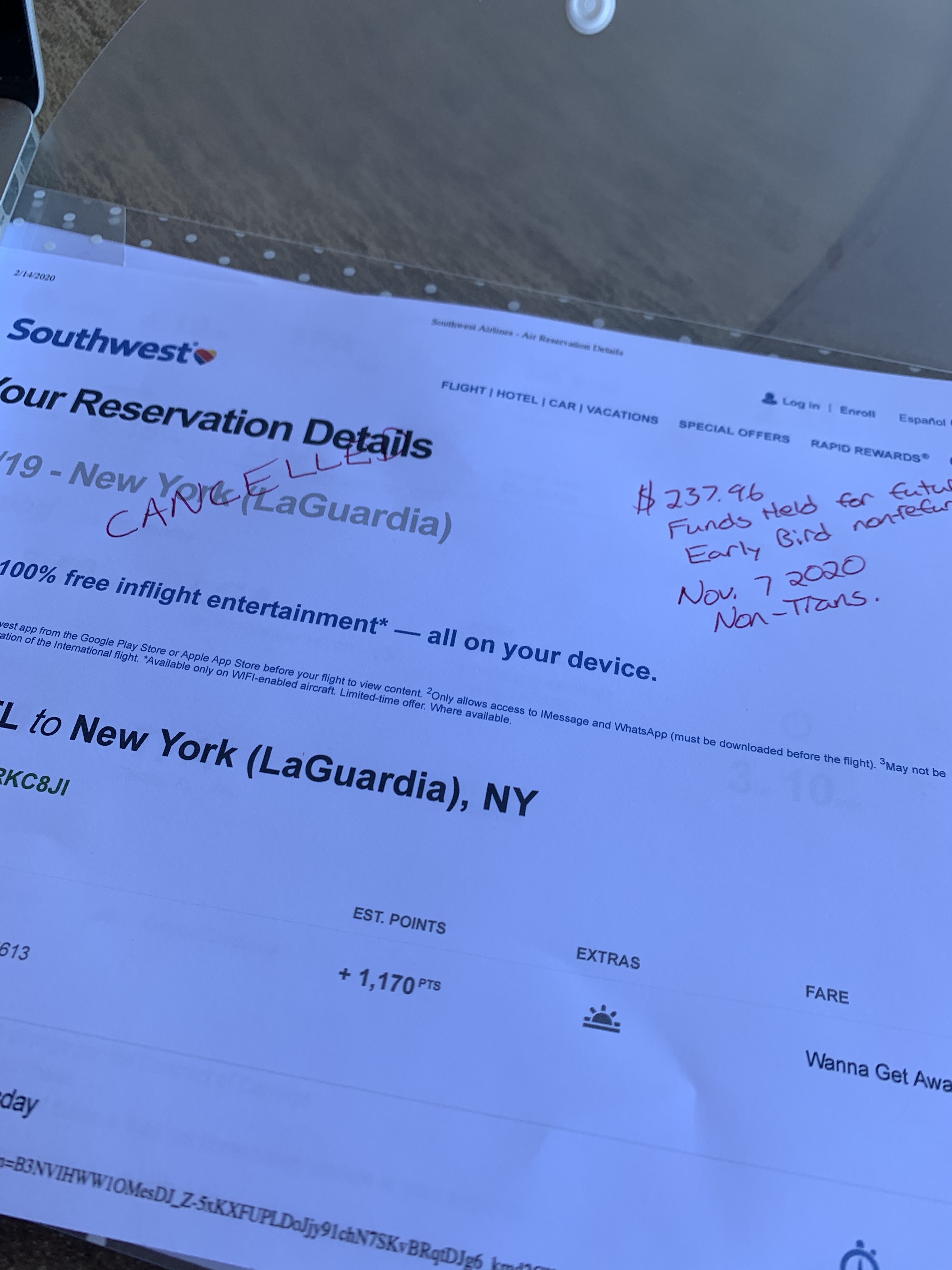 Cancelled airline tickets.