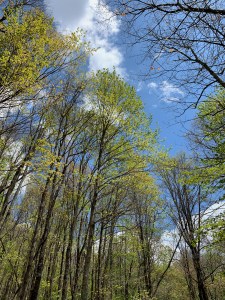 Nothing prettier than the green leaves of the trees against the backdrop of a blue sky.