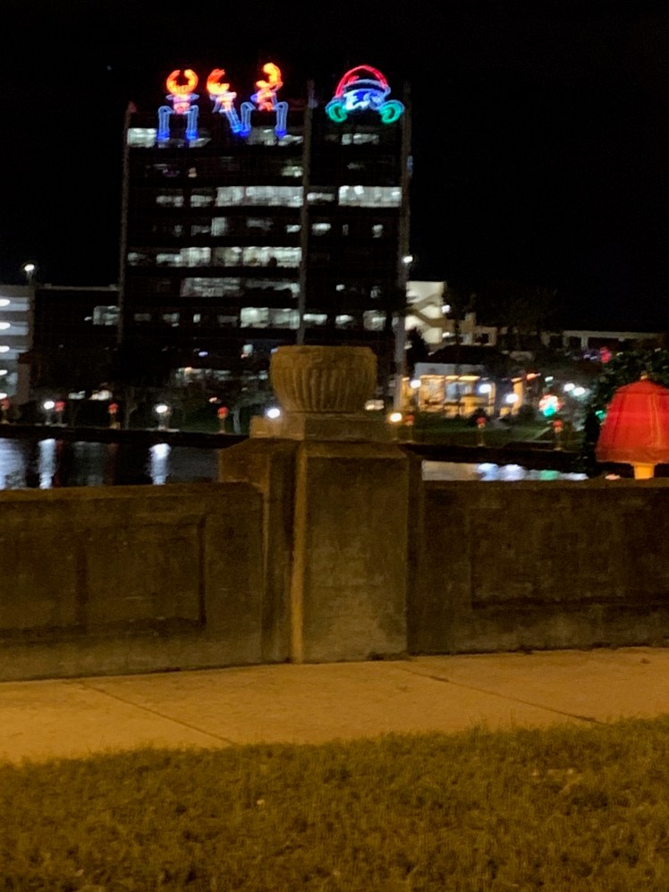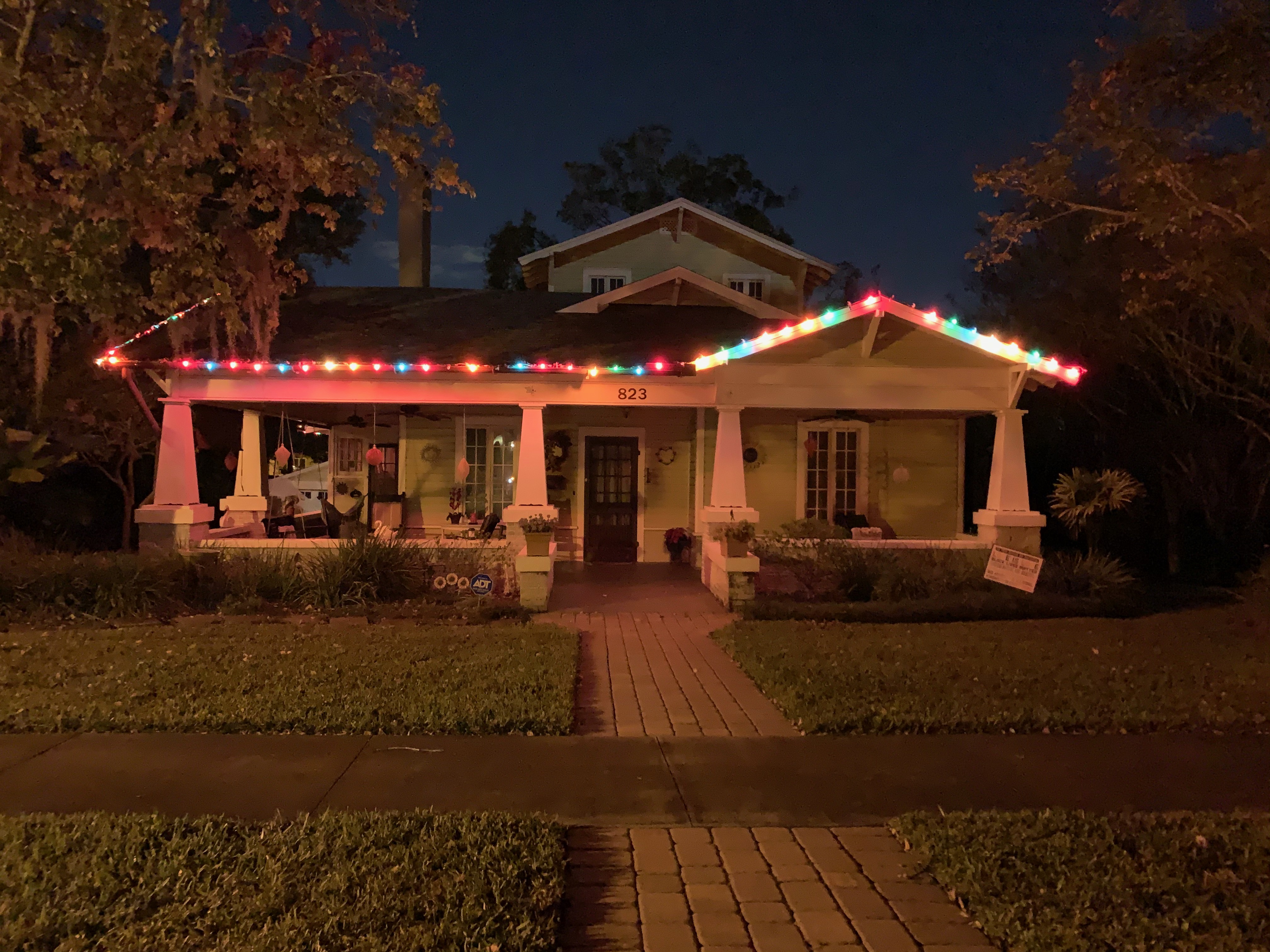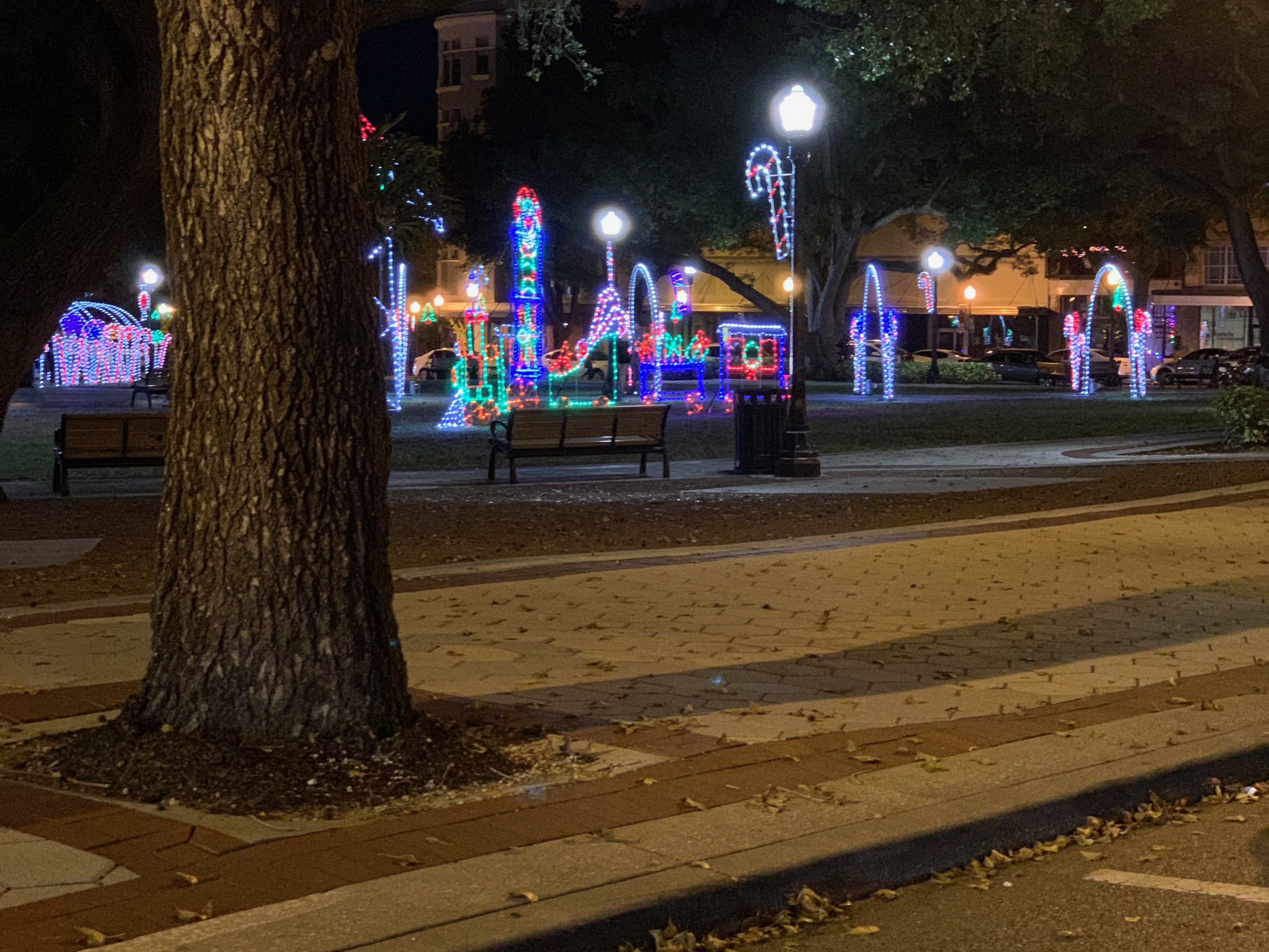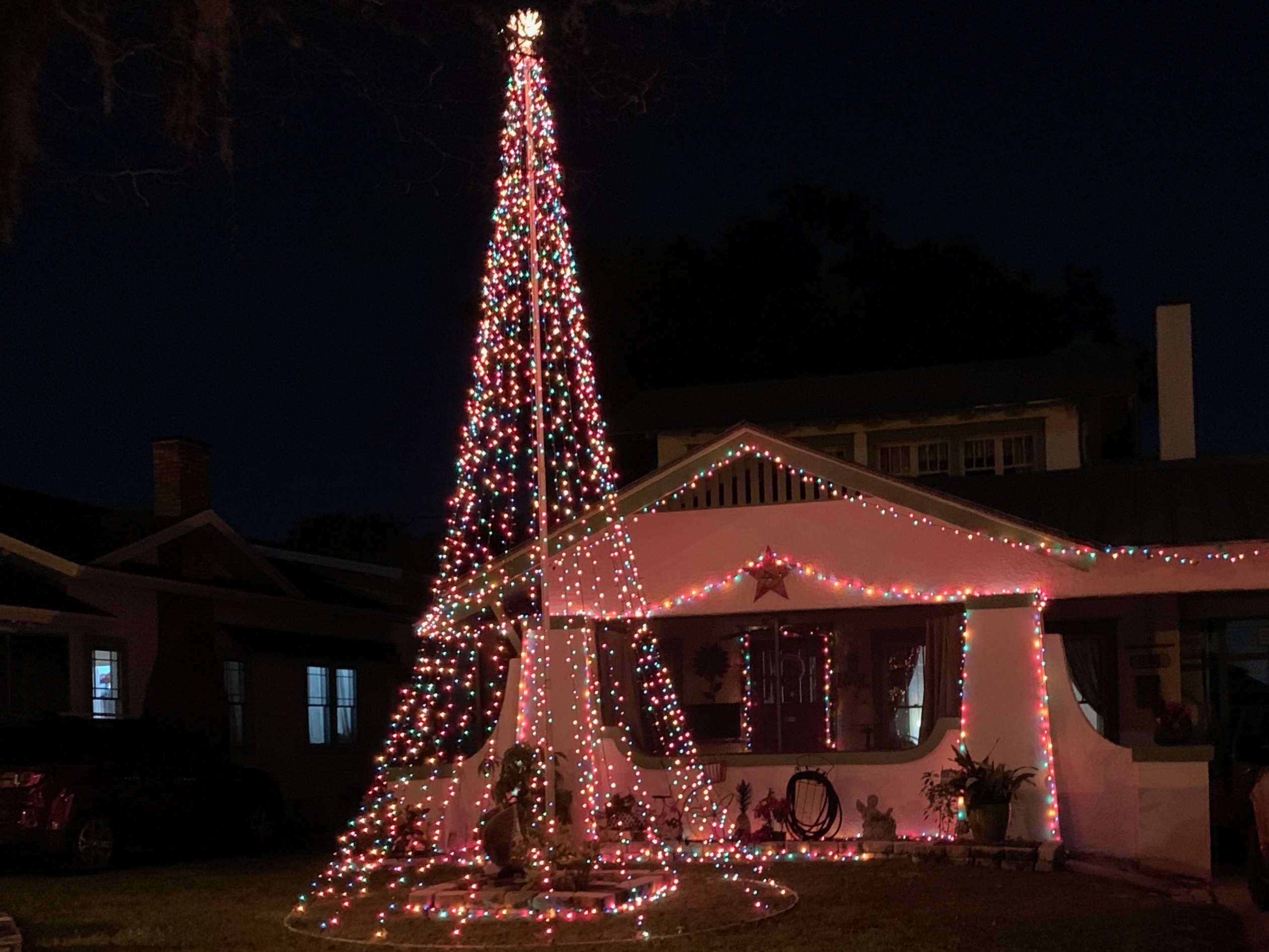 Next, we drove around Lake Morton, one of our lakes with a floating Christmas tree. It has been a tradition since the 1950’s. We drove up and down the streets of the South Lake Morton Historic District admiring the 1920’s bungalows decorated in nostalgic fashion. One of the bungalows used the large, colored bulbs that my father decorated our house with every Christmas. I have a memory of looking out my bedroom window at night and seeing the neighborhood boys stealing some of the bulbs.
