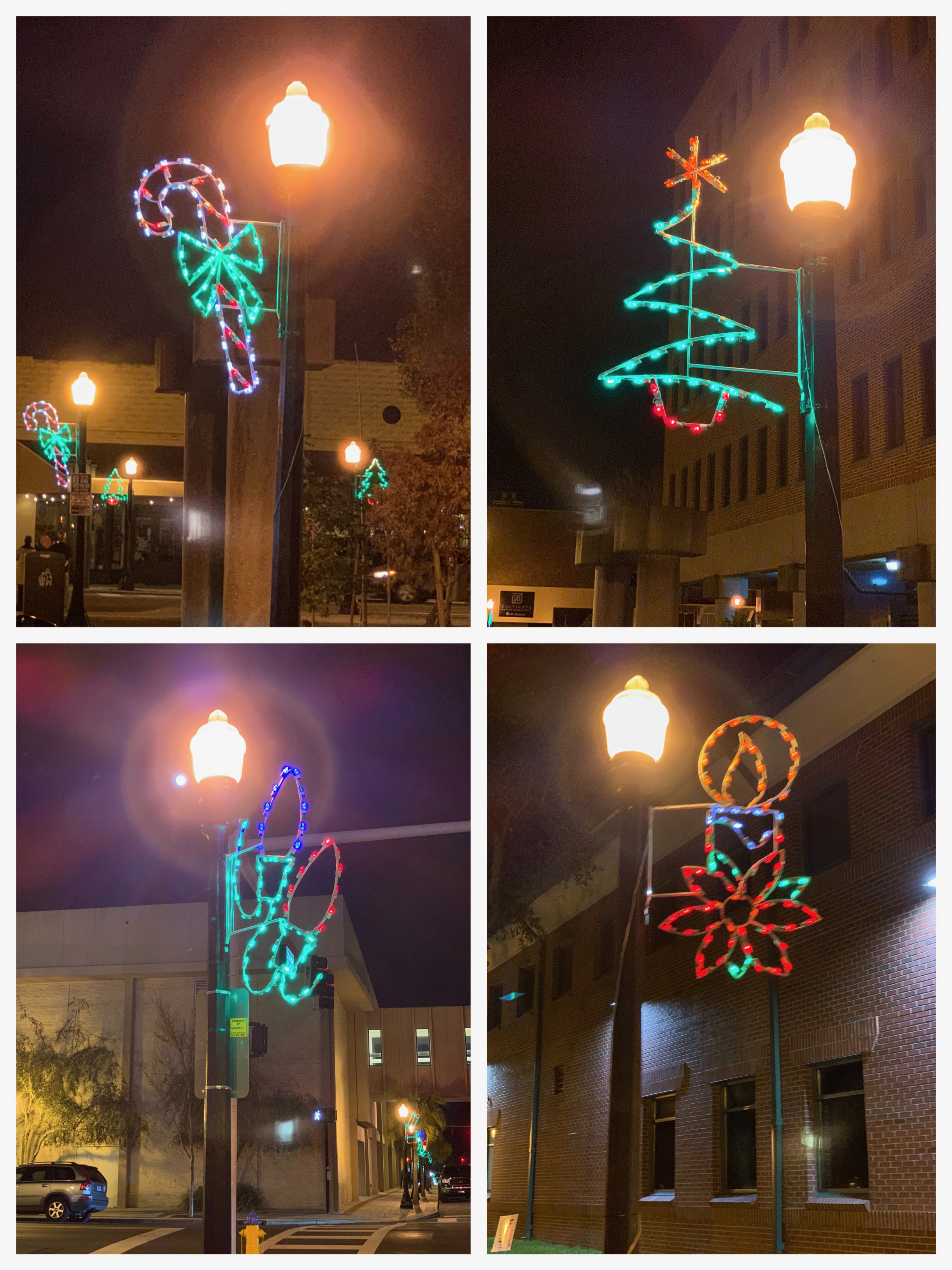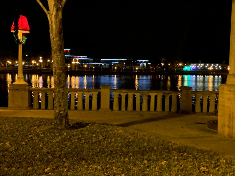For as long as I can remember, the lights around Lake Mirror have been decorated with red bell shades. I’m sure they have been replaced a time or two. They are a reminder of Christmases past.