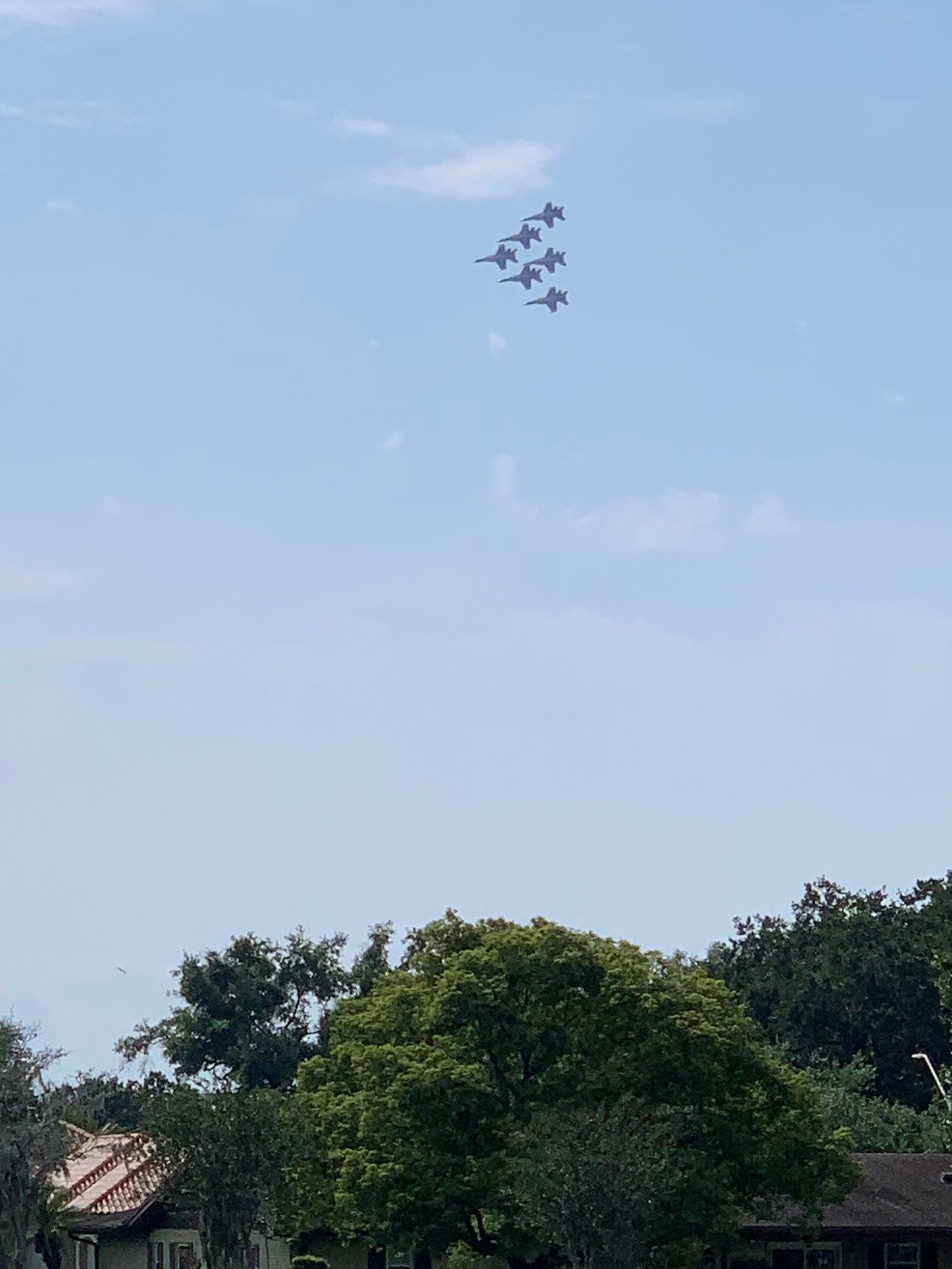 Imagine my shock and dismay when people all around me started getting into their cars and driving away. The families sitting by the retention pond folded up their chairs, gathered their children and got into their cars to leave. I had missed the Blue Angels! While I was puttering around the grocery store, the jets were wowing the audience with their amazing aerobatics. The roaring jets I had heard as I was checking out were at the conclusion of the show, not the beginning.