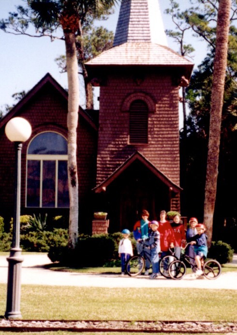 We experienced all kinds of weather at these oyster roasts. Sometimes the weather was mild and we could enjoy excursions over to the nearby islands. We toured the lighthouse and fort on St. Simons and rode bicycles around Jekyll. Other times, there would be rain or freezing weather. On those colder days, I loved slipping inside to sit in front of the fire and visit with cousins. Looking out the big picture window at the golden marshes to the lighthouse on the tip of St. Simons and the Atlantic Ocean beyond was just dreamy. Sigh. Absolutely one of my favorite mental images.