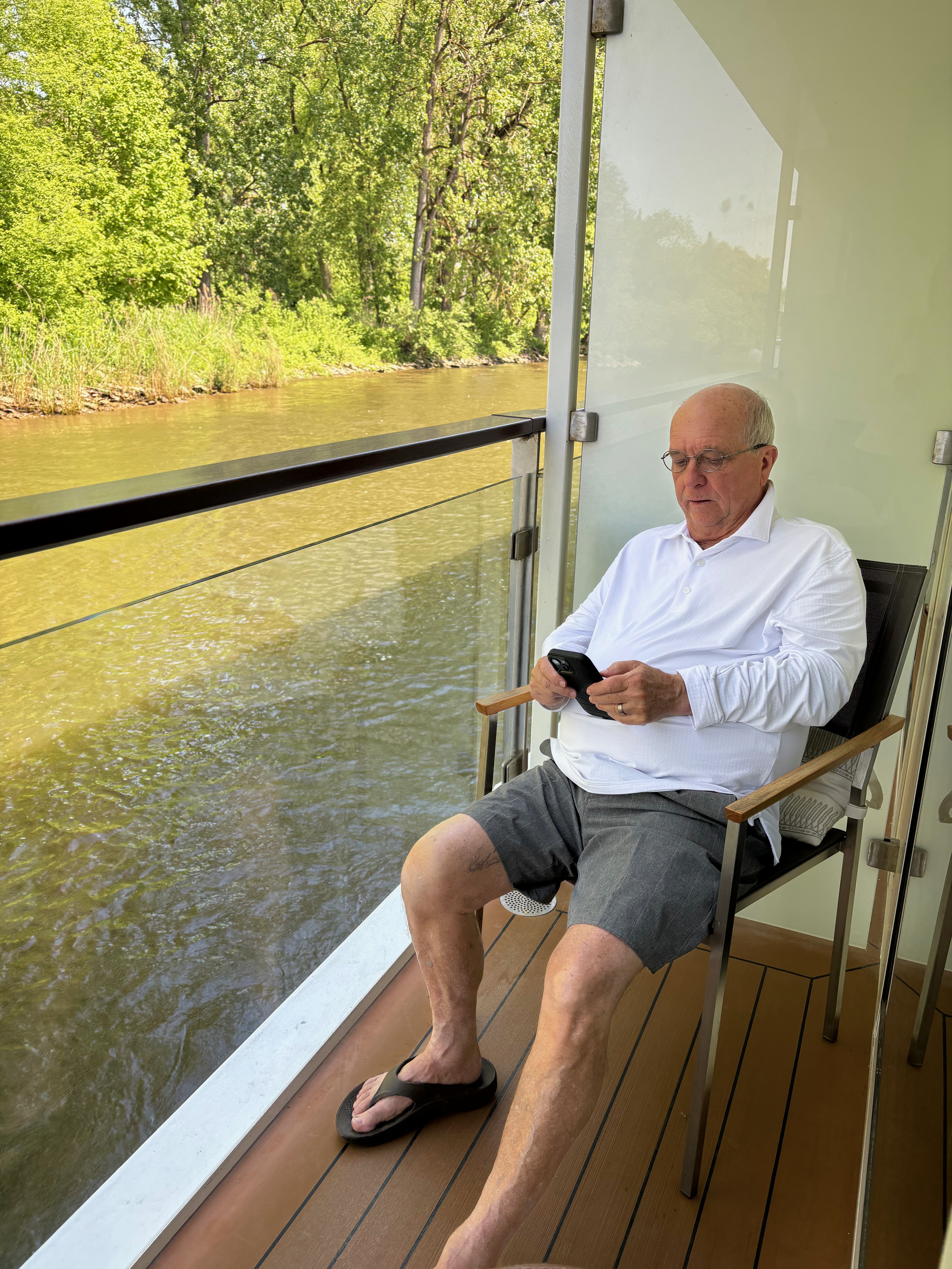 I thought about my mom because she loved to travel and instilled that love in her children and grandchildren. I also thought about her as we cruised through the wine region with hills covered in vineyards. I even saw the same corgi on two different days. (Mom said she would send me a sign to let me know she was thinking of me — a corgi). Finally, there was a building in Amsterdam with what looked like the word Mom on its facade.