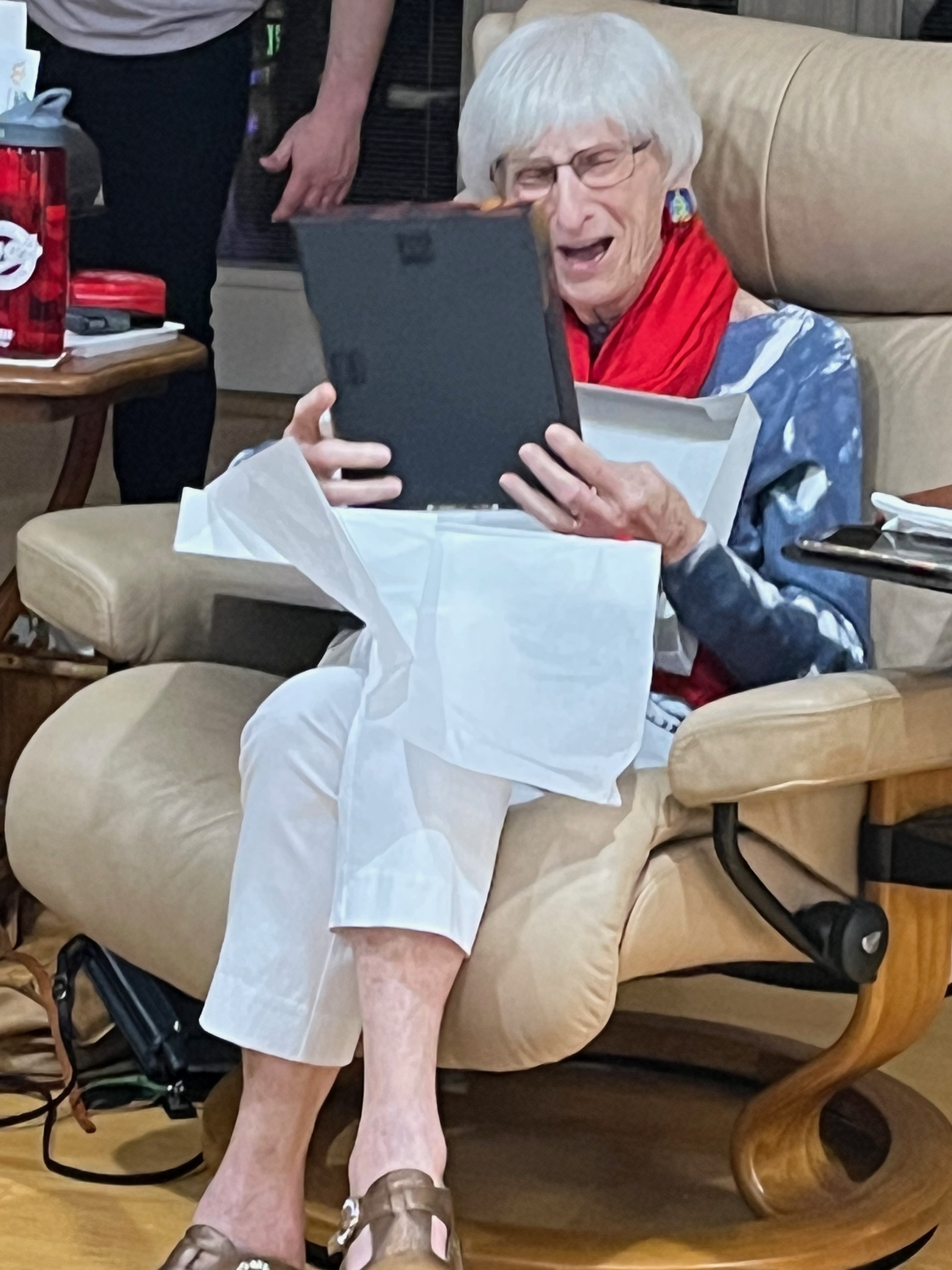 When we had our Christmas celebration, we all anxiously watched as she opened her gift. It was THE BEST reaction to a Christmas present I have ever witnessed. She laughed so hard when she opened it she almost cried; it was hysterical—one of my favorite mom memories.