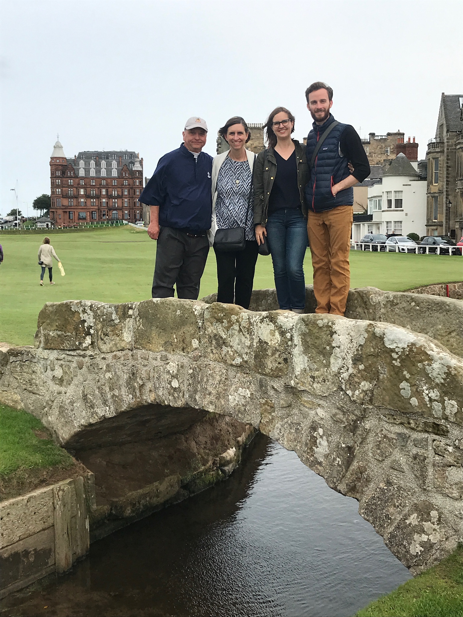 Family snapshot at the famous Swilken Bridge on the Old Course of St. Andrews.